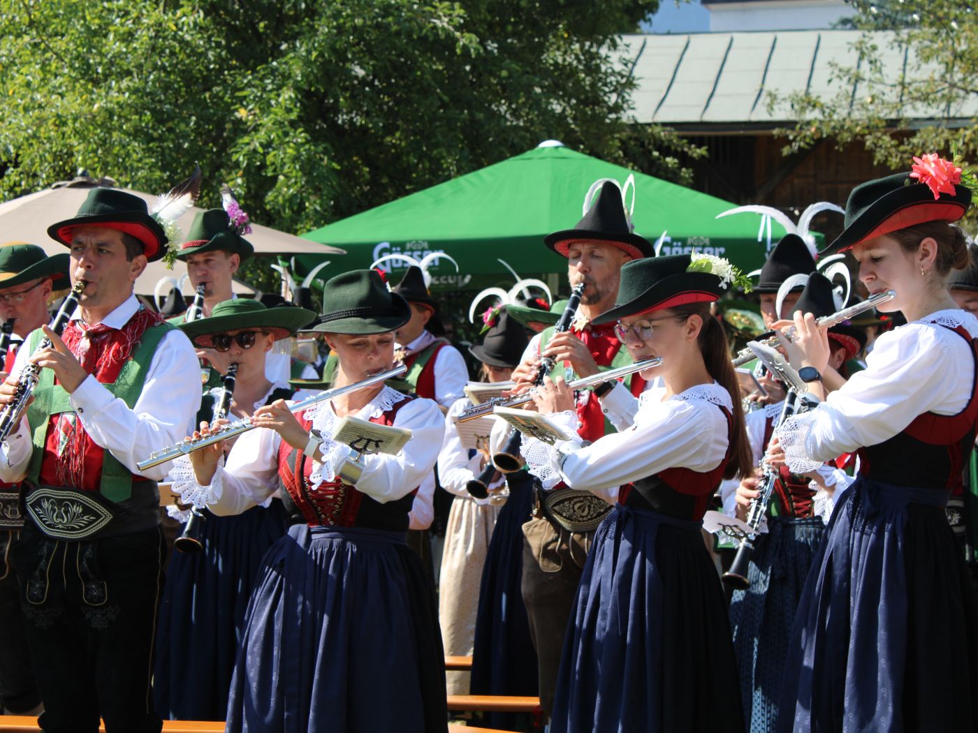 Der Sonntag bot für Liebhaber der Blasmusik Gänsehaut-Momente: Bei bestem Sommerwetter zogen die 800 Musikanten des Musikbezirks Lienzer Talboden gleich am frühen Sonntagmorgen im Sternmarsch durch die Innenstadt zum Festgelände im Klostergarten. Gesäumt und ob ihrer schönen Trachten bewundert von Gästen aus nah und fern. Im Klostergarten nahmen die Musikanten und Marketenderinnen Aufstellung. Die Hl. Messe feierte Pater Martin mit viel Fröhlichkeit, die auf die Festgäste überging.