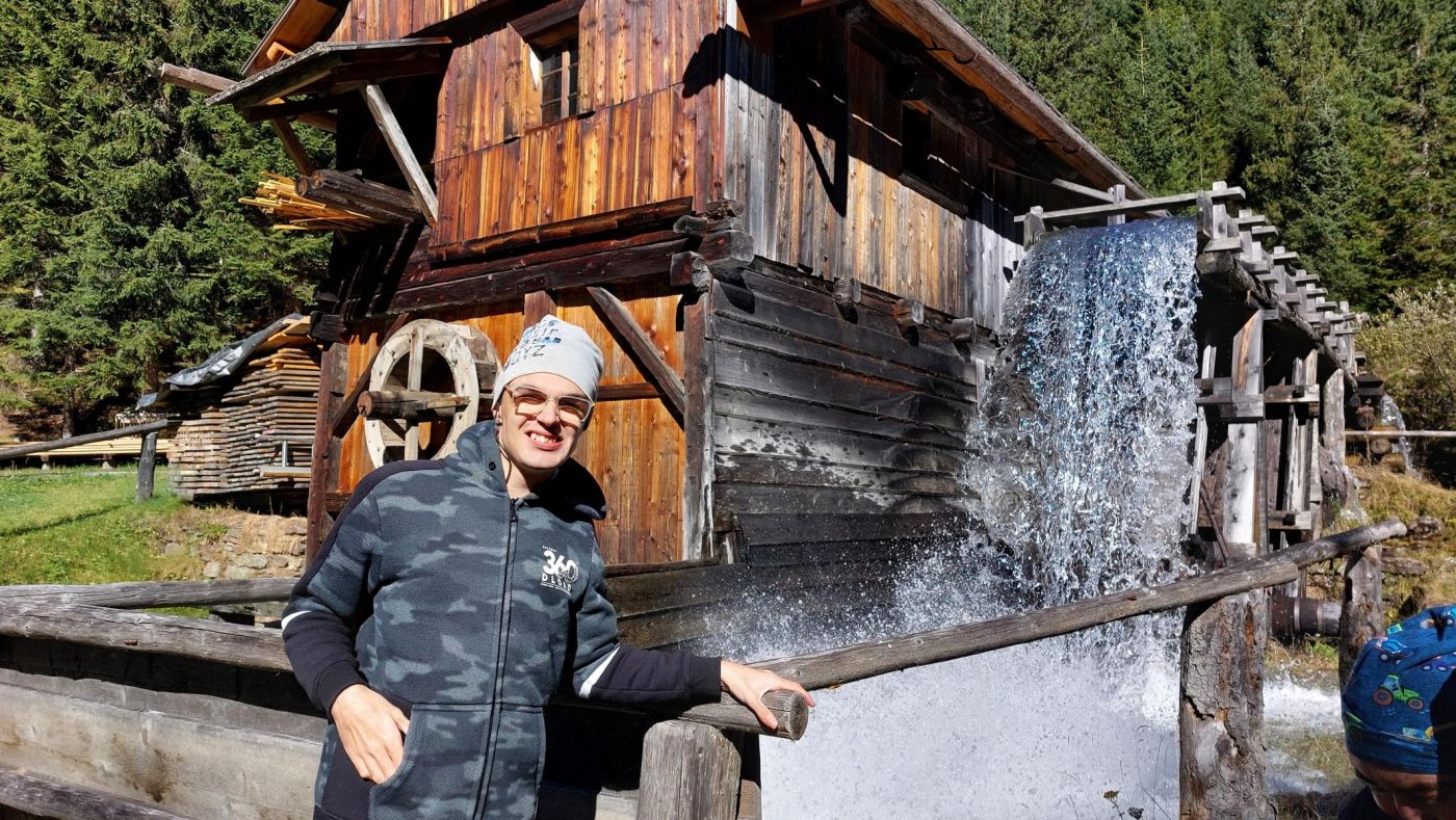 Ein weiteres Highlight war der Besuch des Freilichtmuseums „Alpines Leben“ in Innervillgraten. „Hans & Hans“ haben den Schülern ua. gezeigt, wie eine alte Mühle aus Korn Mehl mahlt. Eine Säge zeigte den Weg vom Baumstamm zum Brett – ganz ohne Strom, nur mit Wasserkraft.