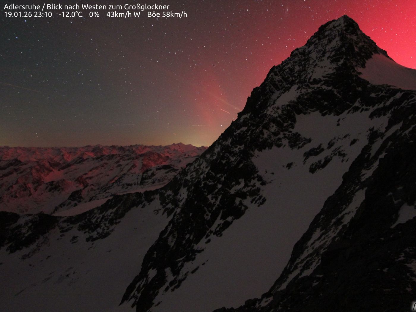 Das Foto nahm die Webcam auf der Adlersruhe um 23.10 Uhr auf. Foto: Erzherzog Johann Hütte