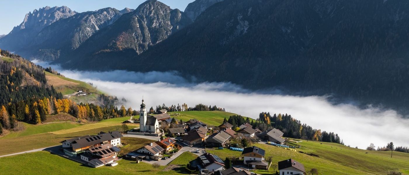 Fotograf Toni Außerlechner fing das Naturschauspiel mit seiner Kamera ein: Der Anraser Ortsteil Ried, das Nebelmeer und die Lienzer Dolomiten. Foto: osttirol-fotos.at