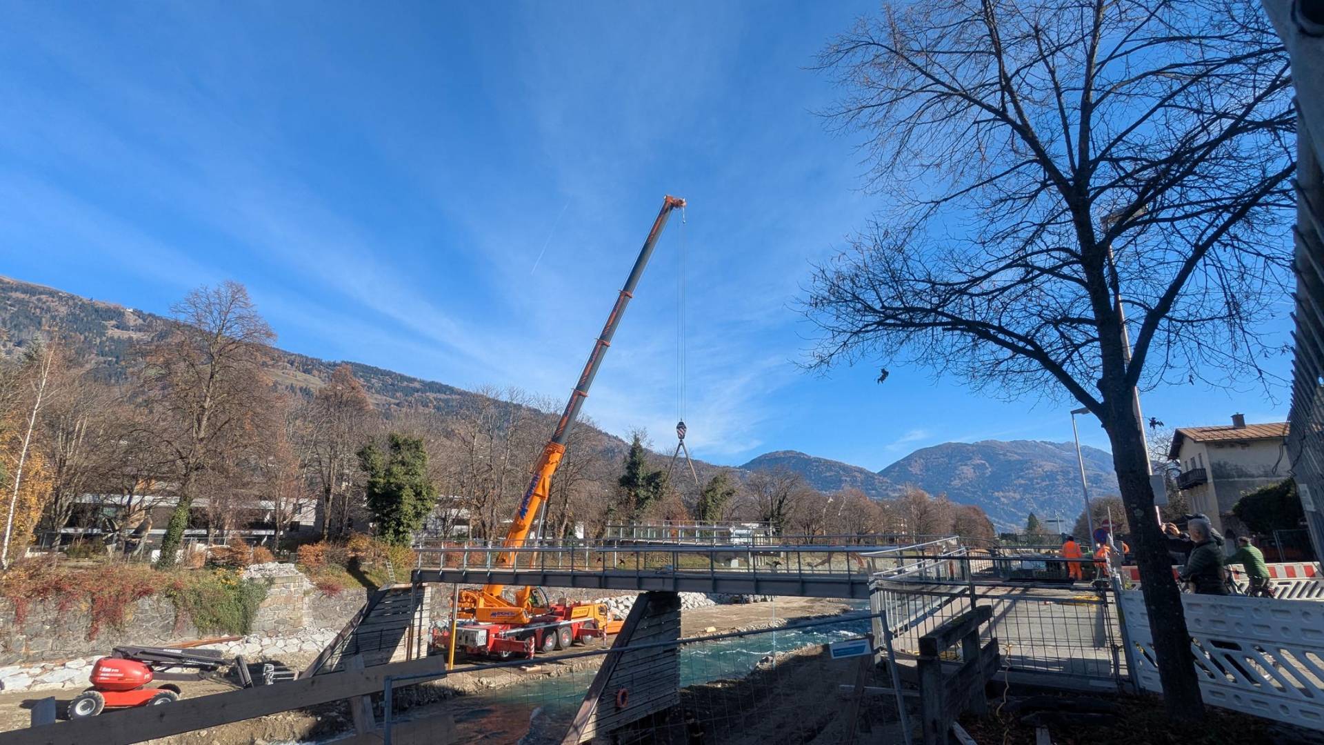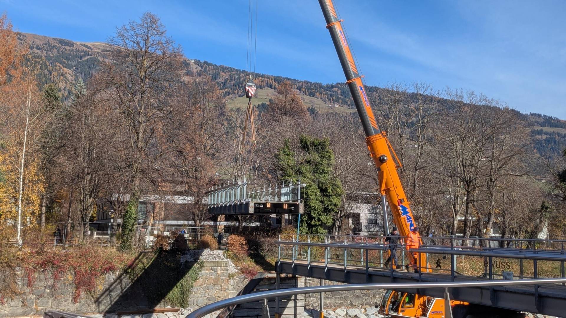 Lienz. Wo bisher der Iselsteg eine wichtige Verkehrsverbindung für Fußgänger und Radfahrer bildete, klafft jetzt ein Loch. Am Mittwochvormittag hatte ein großer Schwerlastkran eindrucksvoll das erste Brückenelement in die Luft gehoben. Der Übergang in die Stadt und aus ihr heraus ist somit an dieser Stelle fortan unmöglich. Doch keine Sorge, wie bereits zu Beginn der Woche berichtet, kommt die neue Brücke im nächsten Frühjahr.