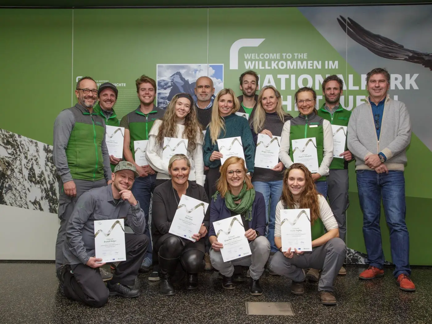 Die Ranger:innen sind sowohl bei Führungen in der eindrucksvollen Landschaft des Nationalparks Hohe Tauern unterwegs, als auch in den 17 Osttiroler Partnerschulen. Das Wissen über den größten und ältesten Nationalpark Österreichs, seine Kulturgeschichte, Geologie und die Tier- und Pflanzenarten spannend zu vermitteln, gehört zum Aufgabenfeld der 8 neuen Rangerinnen. Vier von ihnen sind bereits seit Beginn der Ausbildung im Nationalpark Hohe Tauern tätig: Christoph Dietmaier, Elisabeth Fladerer, Armin Kollreider und Sophie Thaler. Die weiteren zertifizierten Ranger:innen Christine Brugger, Gerd Dercon, Veronika Krutschitz und Tanja Lengfeldner haben die Ausbildung neben ihrem Beruf absolviert, und werden den Nationalpark Hohe Tauern in Spitzenzeiten bei Erlebnistouren oder Schulprogrammen unterstützen. „Als Naturschutzlandesrat bin ich sehr stolz auf den Zuwachs im Ranger:innen Team und wünsche allen Neuen viel Erfolg und Freude bei ihrer wichtigen Arbeit“, so Landesrat René Zumtobel bei der Verleihung der Urkunden.