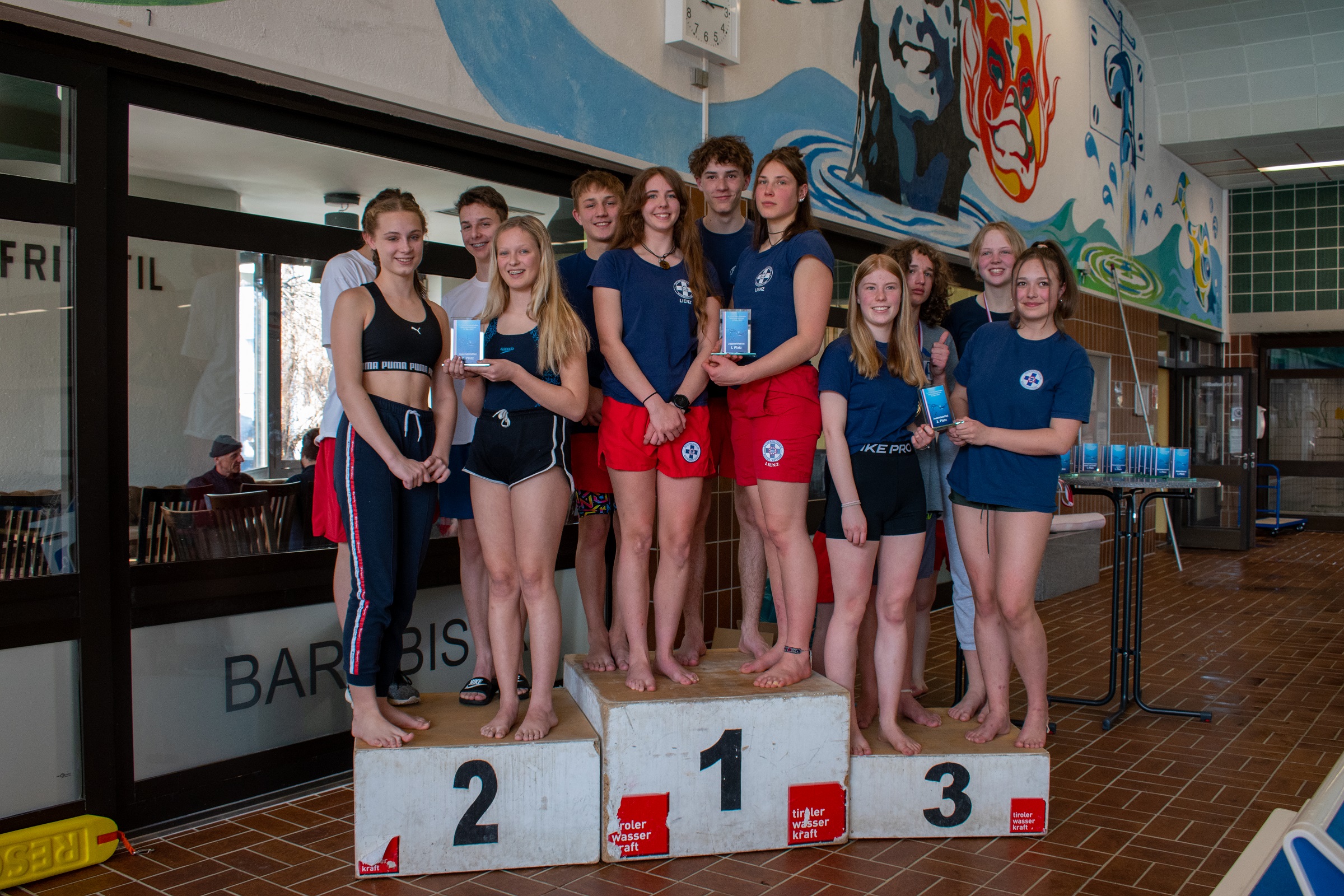 Am 13. März trat die Einsatzstelle Osttirol mit 16 Teilnehmer:innen bei den 13. Tiroler Meisterschaften im Rettungsschwimmen in Innsbruck an und konnte dabei zahlreiche Meistertitel, Podestplätze und weitere sehr gute Platzierungen erreichen. Obwohl einige, vor allem die Jüngsten, erst ihre ersten Erfahrungen im Wettkampf auf dieser Ebene machten, durfte sich die ÖWR Osttirol in der Jugendklasse 1 mit Lorenz Kurzthaler schon über einen Vizemeistertitel freuen.