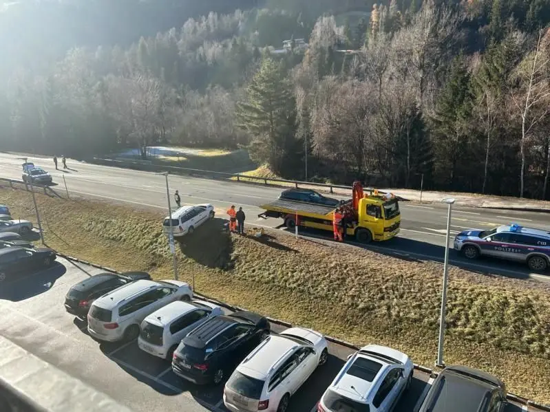 Am 13.12.2025, gegen 06:25 Uhr, lenkte ein 32-jähriger, kroatischer StA seinen PKW in 9971 Matrei in Osttirol auf der Felbertauernstraße P 1 von Mittersill kommend in Fahrtrichtung Matrei in Osttirol. Auf dem Beifahrersitz befanden sich 2 weitere Kroaten (39 und 45 Jahre alt) Ca 5 km nach dem Felbertauerntunnel (km 9,5) kam der Lenker aus bisher ungeklärter Ursache über den linken Fahrbahnrand hinaus und prallte gegen die dort befindliche Felswand. In der Folge wurde der PKW auf die Fahrbahn zurückgeschleudert und kam dort mit seitlich mit der Beifahrerseite nach unten zum Stillstand. Der Beifahrer und der Mitfahrer am Rücksitz konnten sich aus dem Fahrzeug befreien. Der Lenker war auf dem Lenkersitz eingeklemmt. Passanten und ein zufällig vorbeikommender Sanitäter leisteten Erste Hilfe. Die Feuerwehr Matrei in Osttirol konnte den eingeklemmten Lenker mittels Bergeschere befreien. Alle drei Fahrzeuginsassen waren ansprechbar und wurden mit Verletzungen unbestimmten Grades zum Bezirkskrankenhaus Lienz gebracht und stehen dort noch in Behandlung. Am PKW entstand Totalschaden.