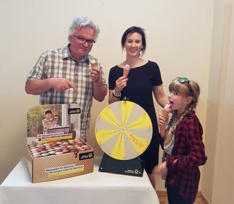 Peter Kofler darf sich über eine Eismaschine freuen, die er als Gewinner des Sommergewinnspiels der Raiffeisenkasse Lienzer Talboden erhält