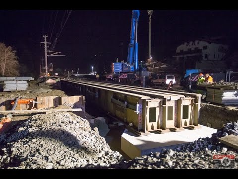 In der Nacht von Samstag auf Sonntag, den 13.3.2016, wurde in Thal-Assling eine Eisenbahn Hilfsbrücke für den Bau der neuen Bahnunterführung eingesetzt.