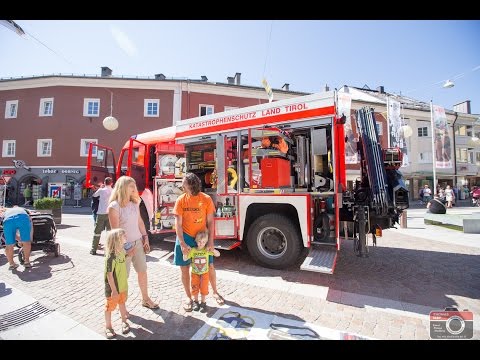 Jährlich demonstriert man im Zuge des Feuerwehrfestes bei einer Fahrzeugschau auch stolz den Materialstand auf dem Lienzer Hauptplatz und Johannesplatz. Auch heuer nahmen Einheimische und Gäste die Gelegenheit wahr die Löschkraftfahrzeuge ganz aus der Nähe zu besichtigen. Im "siebten Himmel" war das Ehepaar Renate und Edi Weiskopf, das sich nach der Trauung mit der Drehleiter in luftige Höhe heben ließ.