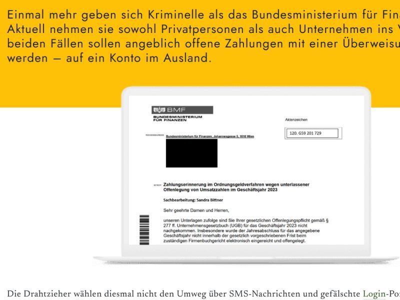 Aktuell sind wieder vermehrt betrügerische SMS-Nachrichten unterwegs, die scheinbar vom Portal „FinanzOnline“ oder vom Bundesministerium für Finanzen (BMF) stammen.