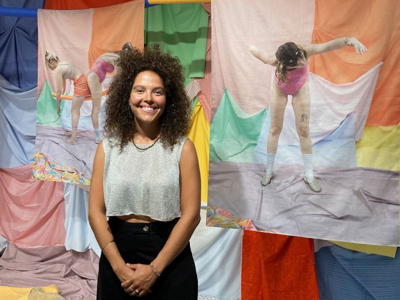 Junge Künstlerin arbeitet mit Stoff der Erinnerung