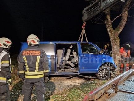 In den frühen Morgenstunden des 08.11.2025 lenkte ein 21-jähriger Österreicher einen Kastenwagen im Stadtgebiet von Lienz in südliche Richtung. Auf der Beifahrersitzbank befanden sich eine 19-Jährige, sowie ein 19-Jähriger (beide ebenfalls österreichische Staatsangehörige). Gegen 04.50 Uhr kam der Kastenwagen ? nach derzeitigem Ermittlungsstand vermutlich aufgrund überhöhter Geschwindigkeit ? am Ende einer langen Gerade in einer Rechtskurve über den linken Fahrbahnrand hinaus und kollidierte frontal mit einem Baum. Während der 21-Jährige und der 19-Jährige das Unfallwrack selbstständig verlassen konnten, wurde die 19-Jährige im Fahrzeug eingeklemmt und musste von der Feuerwehr mittels hydraulischem Rettungsgerät befreit werden. Der 19-Jährige wurde schwer, sowie die beiden weiteren Beteiligten unbestimmten Grades verletzt und mussten durch den Rettungsdienst in das Bezirkskrankenhaus Lienz eingeliefert werden. Ein mit dem 21-jährigen Lenker durchgeführter Alkotest verlief positiv und ergab eine starke Alkoholisierung. Im Einsatz standen der Rettungsdienst samt Notarzt, die Freiwillige Feuerwehr Lienz sowie die Polizeiinspektion Lienz. Nach Abschluss der Ermittlungen ergehen Berichte an die zuständigen Stellen.