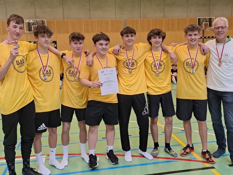 Burschenmannschaft der HAK Lienz jubelt über den ersten Tiroler Landesmeistertitel im Floorball.