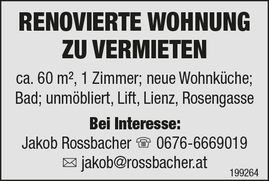 Lienz: Garconniere teilmöbliert, bester Zustand, zu vermieten. Tel. 0664-4605814.