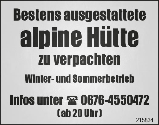 Verpachte 3 ha landwirtschaftliche Nutzfläche in 9821 Obervellach/Lassach. 0664-7608233.