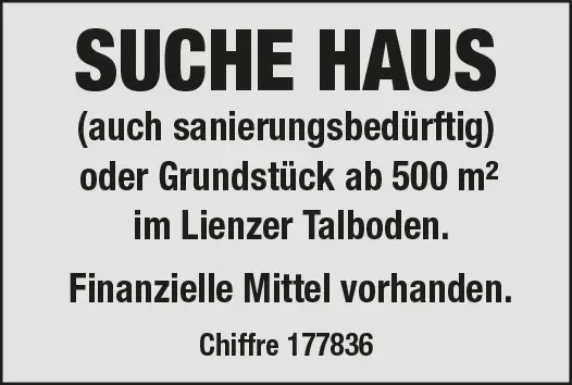 Suche Kleinwohnung oder Garconniere als Zweitwohnung im Lienzer Talboden. Tel. 0677-18004348.