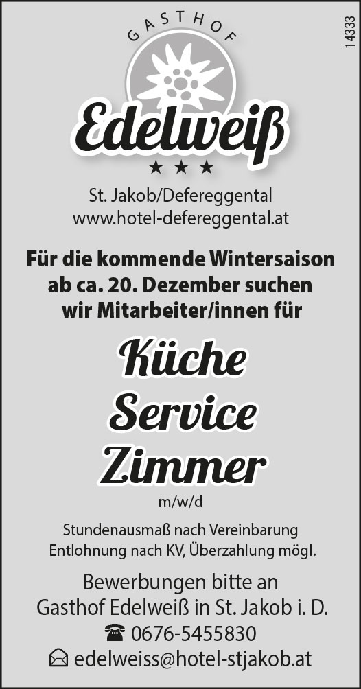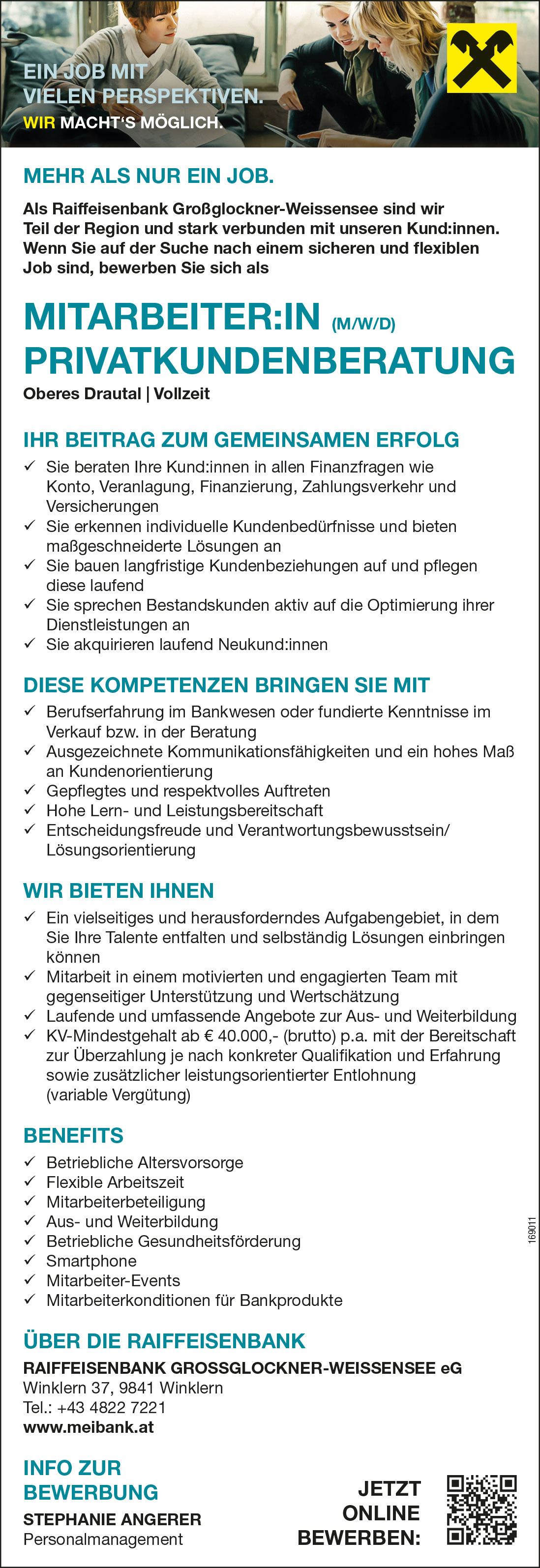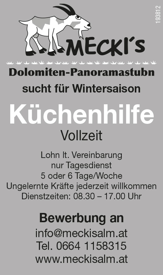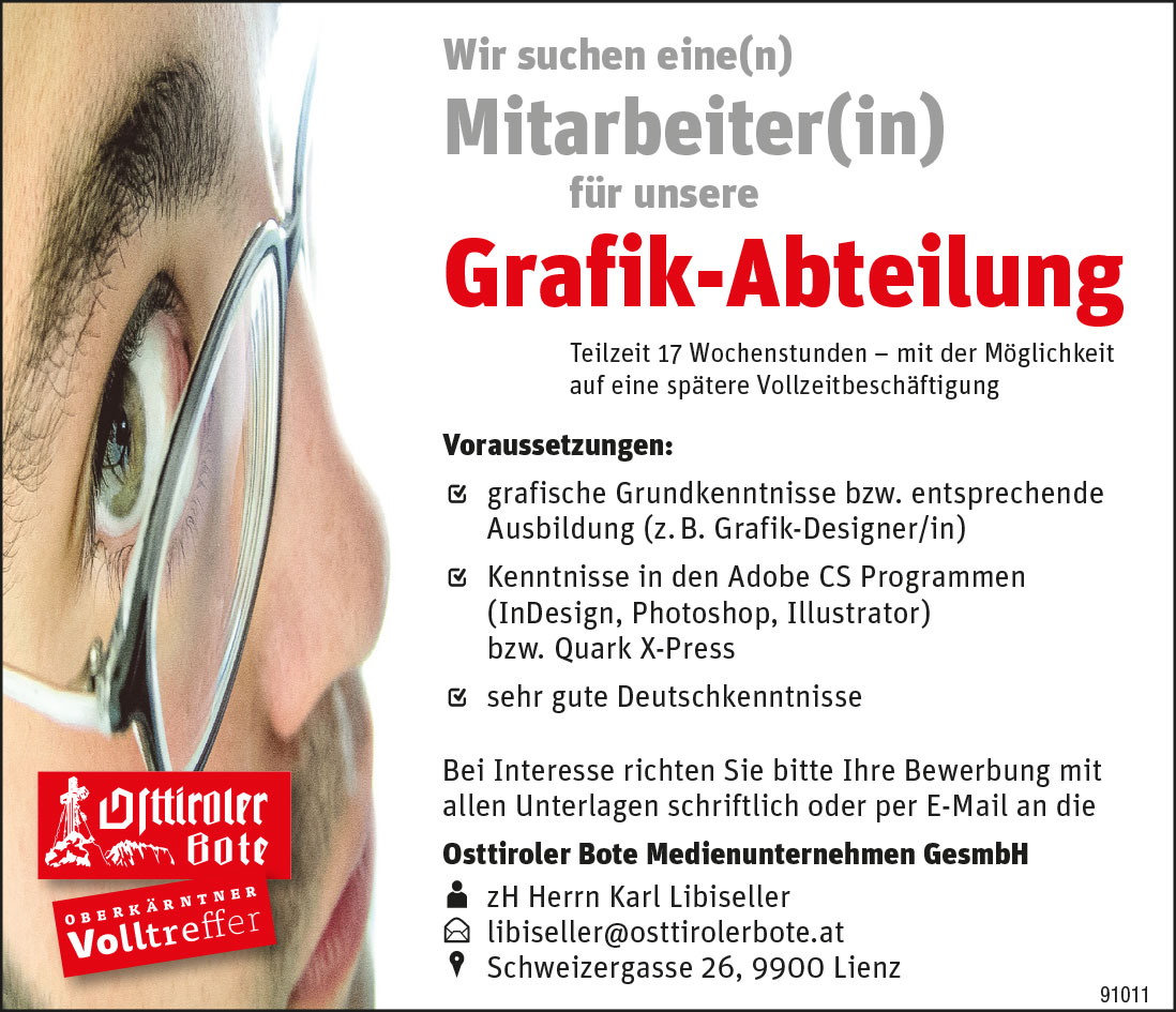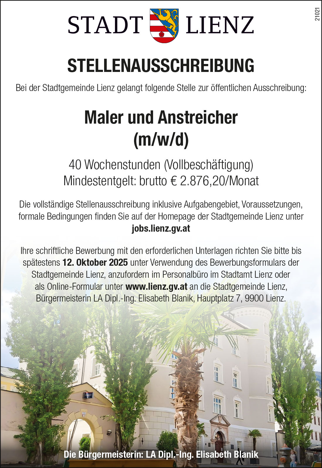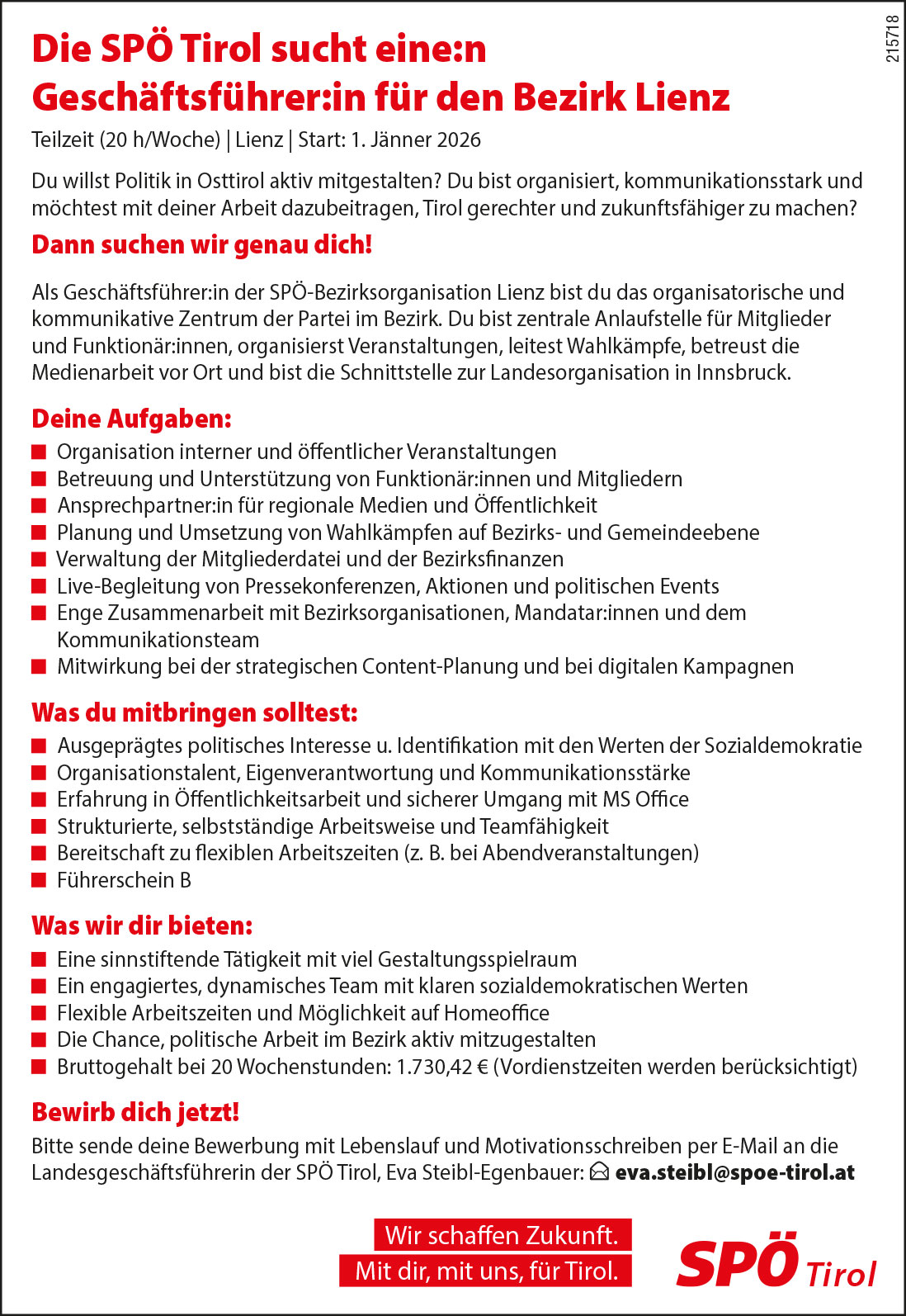 Willkommen im Stellenmarkt von osttirolerbote.at! Hier finden Sie eine große Auswahl an aktuellen Jobangeboten aus der Region, egal ob in Handwerk, Industrie, Tourismus oder anderen spannenden Branchen. Stöbern Sie durch die vielfältigen Möglichkeiten und bewerben Sie sich direkt online. Wir helfen Ihnen, den passenden Job in Ihrer Nähe zu finden und Ihre Karriere in Osttirol voranzutreiben. Starten Sie noch heute durch und entdecken Sie Ihre berufliche Zukunft!