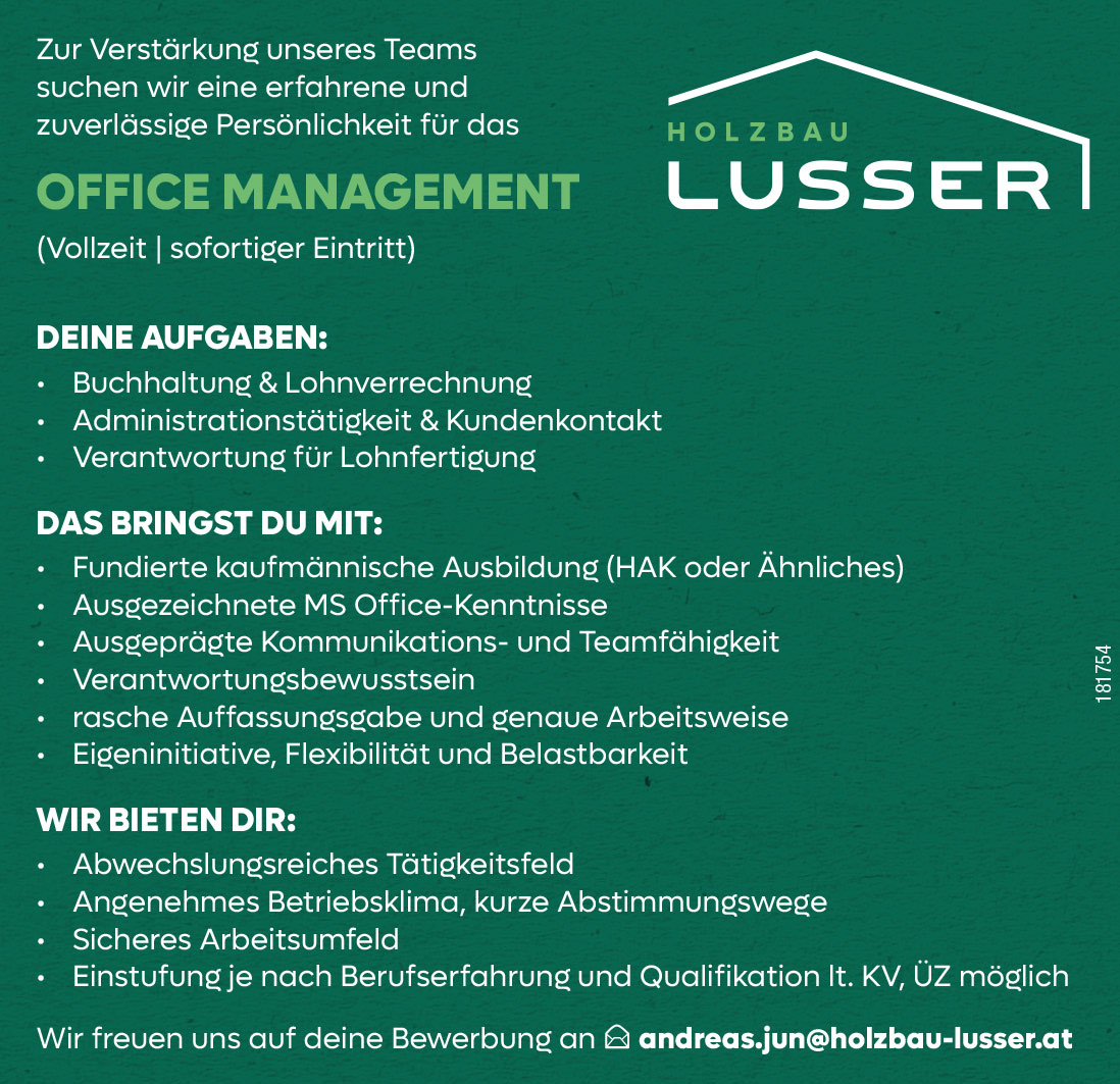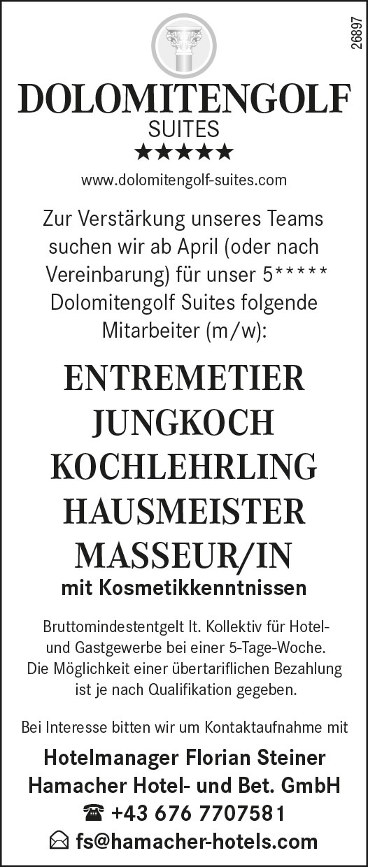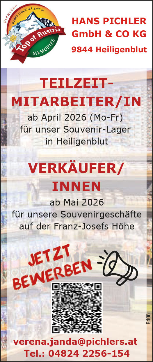 Willkommen im Stellenmarkt von osttirolerbote.at! Hier finden Sie eine große Auswahl an aktuellen Jobangeboten aus der Region, egal ob in Handwerk, Industrie, Tourismus oder anderen spannenden Branchen. Stöbern Sie durch die vielfältigen Möglichkeiten und bewerben Sie sich direkt online. Wir helfen Ihnen, den passenden Job in Ihrer Nähe zu finden und Ihre Karriere in Osttirol voranzutreiben. Starten Sie noch heute durch und entdecken Sie Ihre berufliche Zukunft!
