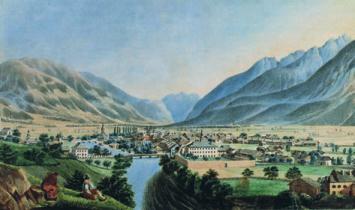 Lienz gegen Osten, Aquarell, um 1800 (Museum der Stadt Lienz Schloss Bruck).