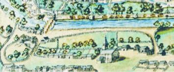Ausschnitt aus der ältesten Lienz-Ansicht mit dem Zentrum des Rindermarktes (Beda-