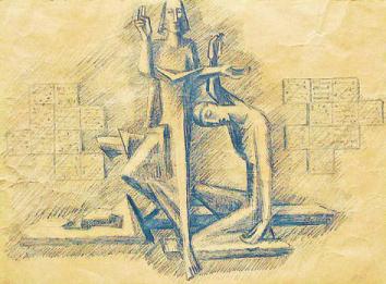 Ein nicht realisierter Entwurf für das Kriegerdenkmal in Rauris 1951/52. Bleistift