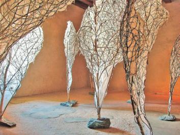 Elke Maier: Sonnengeflechte. Fronleichnamsbirken, beschichtet mit einer Membran aus