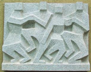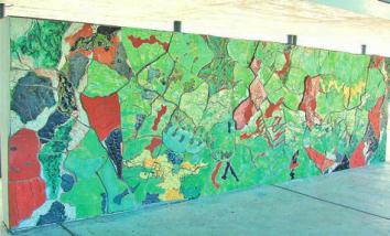 Max Weiler: Zur Eröffnung der Schule 1960 – Keramikrelief, 2,03 x 6,59 m, als Vordach-