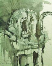 Aus der umfangreichen Bilderserie „Kranke Köpfe“ von 2001-2002: Trockenfarbe auf