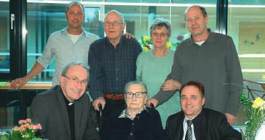 Feuerwehrmänner eine Urkunde und ihre ersten Dienstabzeichen.