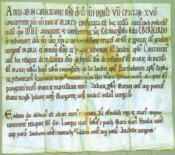 Weihenotiz, die Pfarrkirche St. Andrä betreffend, die am 4. März 1204 von Bischof Jo-