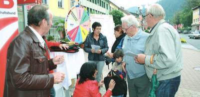 weiten Aktionstages. Mit einem „Pechrad“ am Neuen Platz in Spittal wurde veranschaulicht, welche