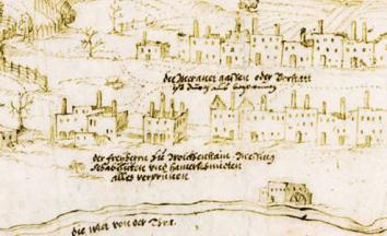 Ausschnitt aus der Federzeichnung mit der Darstellung der am 8. April 1609 abge-