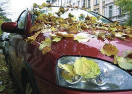 Dass nasses Laub auf der Straße