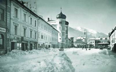Der winterliche Kaiser-Josef-Platz (Hauptplatz) in Lienz, 1936 (Foto: Karberger – TAP)