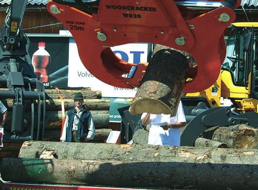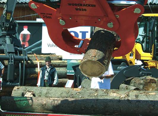 Greifer, Aufschrift „Woodcracker“, Baum, Lenkrad