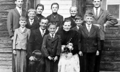 Johann, Adelbert, Mutter Anna, Gerhard, Toni. 2. Reihe v. l.: Michl, Seppl, Anna, Maria, Imelda,