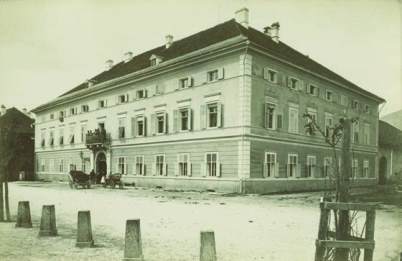 Das weitum bekannte „Hotel Post“ der Familie von Grebmer in Bruneck, um 1880.