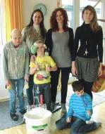 Im Bild vorne: Kinder des IntegrationsZentrums, hinten v. l.: Ines
