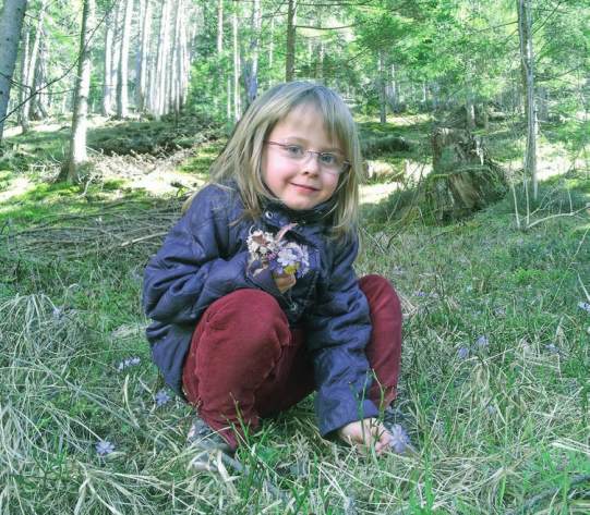 Auch die kleine Sophie pflückt schon fleißig im Wald für ihre