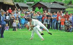 Auf dem Freigelände des Volkskundemuseums messen die Nach-