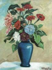 1936: Blumenstrauß in blauer Vase; Öl auf