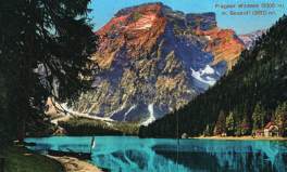 Der auf dieser Postkarte kräftig eingefärbte Pragser Wildsee plus