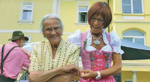 einer Trachtenmodenschau, bei der die Pflegepersonen die neueste