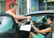 Karin Kröll bei Fahrzeugübergabe