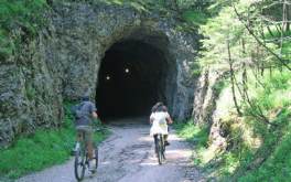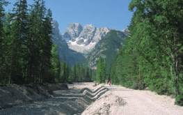Die ehemalige Bahntrasse mit Blick zum Monte Cristallo.