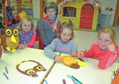 Fleißig bastelten Lena, Daniel, Sara und Lorena gemeinsam mit den anderen Kindern im KIGA