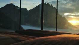 der Dolomitenhütte – nur eine Glasfront trennt Sie von 100 Metern Tiefe und