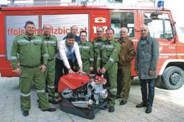 feuerwehr-Kdt. Johannes Trojer, Bgm. Gerhard Pirih, Karl Toll-