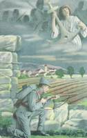 Schöngefärbte oder handgezeichnete Grüße von der Front. Feldpostkarten wurden von der Truppenleitung auf den Inhalt geprüft, mit