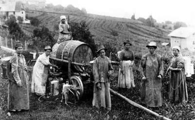 Weinlese in Südtirol im Krieg – ohne die eingerückten Männer.