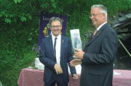 wechselt. Georg Hofmann (l.), Bürgermeister von Heinfels, übergab