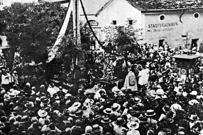 Bittprozession mit Gottesdienst für den Sieg am Lienzer Johannesplatz, 23. August 1914.